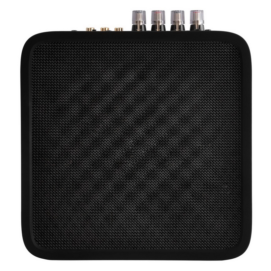 Импульсный источник питания усилителя и его стереофонический выходной каскад, работающий в классе D , размещены на этом основании . Это означает, что его выходные транзисторы могут генерировать волны напряжения и тока практически без выделения тепла. Минимальное количество выделяемого тепла передается от выходных динамиков к большой алюминиевой опорной пластине и заметно снаружи лишь как очень незначительное нагревание устройства.