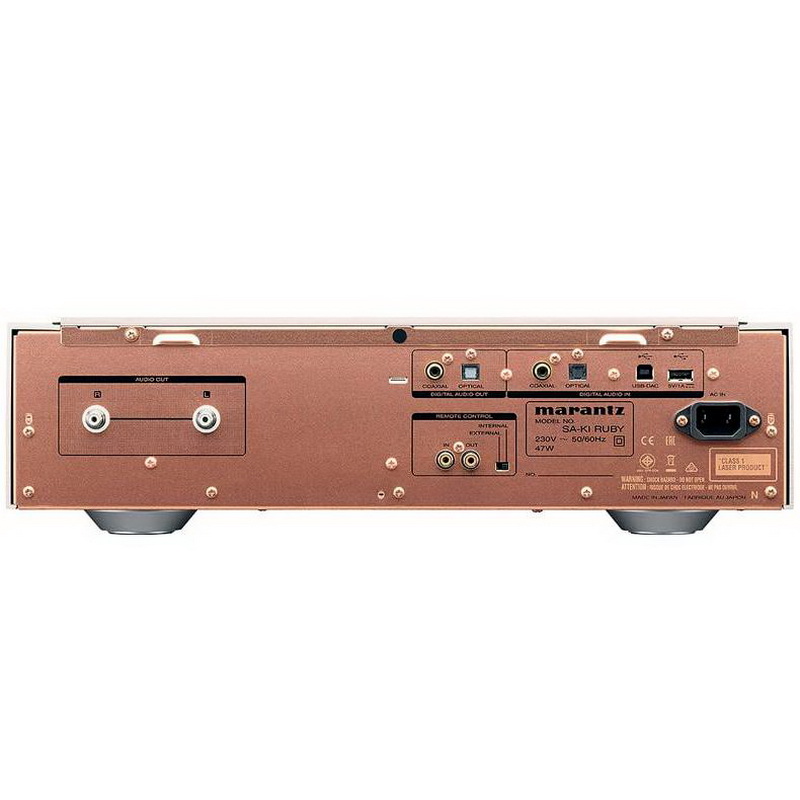 Проигрыватель Marantz SA-KI Ruby является промежуточным между моделями проигрывателей SA-14S1 и SA-10, и можно заметить что в обоих моделях многое взято от флагманской линейки. Внутри Marantz SA-KI Ruby установлен привод дисков SACDM-3, созданный исключительно для аудио и воплотивший более чем 35-летний опыт инноваций Marantz в цифровых технологиях. Новый механизм может читать SACD, CD и компиляции файлов на CD-ROM или DVD-ROM, кроме этого SA-KI Ruby оснащен асинхронным USB входом, способным принимать форматы с разрешением до PCM / DXD 384kHz/32bit и DSD11.2MHz. Технология Marantz Musical Mastering повышает разрешение входных цифровых сигналов, доводя его до однобитового потока DSD11.2MHz – для точности и чистоты аудио, позволяя получать аналоговый выход с помощью простейшего фильтра звуковых частот.