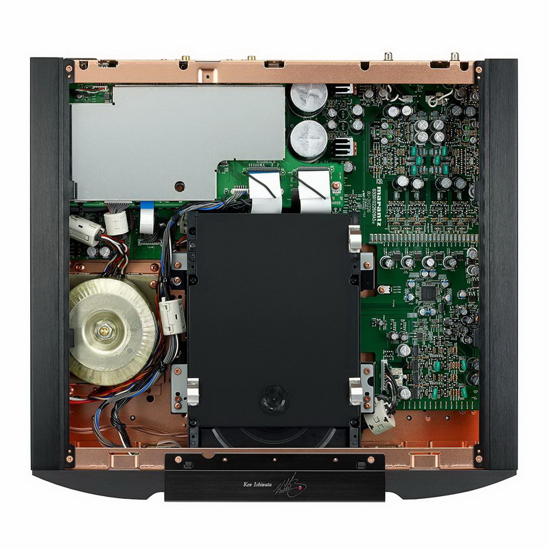 Схема предлагает самый чистый путь прохождения сигнала через усилитель, который обеспечивает 100 Вт на канал при 8 Ом или 200 Вт на канал при 4 Ом, помимо этого, усилитель оснащен высококачественными никелированными входными терминалами и высокочистыми медными акустическими клеммами. Все это построено на виброустойчивом двухслойном шасси, с толстыми алюминиевыми панелями, обеспечивающими жесткость, и украшено выгравированным автографом Кена Ишивата, чтобы выделить этот очень особенный усилитель.