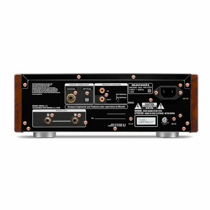 Модель Marantz HD-CD1 нисколько не уступает своим полноразмерным собратьям топового класса, так как оснащена тщательно подобранными комплектующими, высокоточным генератором тактовых импульсов и конвертером Cirrus Logic CS4398 (24 бит/192 кГц), который используется в фирменной референсной линейке. В проигрывателе задействованы дискретные усилительные модули HDAM-SA2, позволяющие получить широкий динамический и частотный диапазон, а также минимизировать искажения. Имеется усилитель для наушников, который тоже использует HDAM. С помощью меню можно выбрать одно из трех значений коэффициента усиления в зависимости от импеданса наушников.
