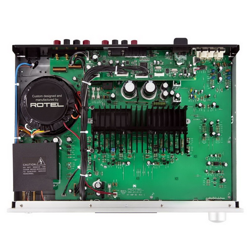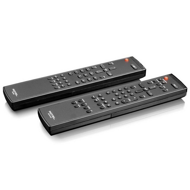 Там же присутствует информация о задействованном входе, а также текущем уровне громкости. Рядом с дисплеем находится гнездо для подключения наушников, выполненное на разъеме мини-джек 3,5 мм. Переключение между входами осуществляется отдельными клавишами. Помимо упомянутого входа Phono к услугам пользователя 4 линейных входа на RCA, а также отдельный выход с каскада предварительного усилителя для организации схемы bi-amping. Там же имеются триггерные выходы, ИК-сокет и интерфейс RS232 для быстрой интеграции с автоматизированными системами управления. В комплект поставки входит фирменный пульт ДУ, который может одновременно работать с любыми компонентами Rotel.