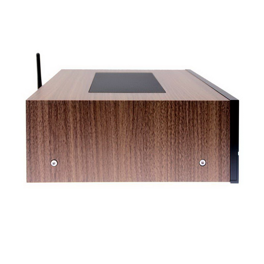 В соответствии с отделкой корпуса под орех, NAD придала передней панели 3050 из алюминия матовое покрытие фирменного темно-антрацитового цвета. Это выглядит очень гармонично и создает ощущение высокого качества при распаковке. Под корпусом с отделкой под дерево NAD, естественно, скрывается экранированный стальной корпус с большим отверстием сверху, через которое через мелкоячеистую решетку видны внутренние компоненты.