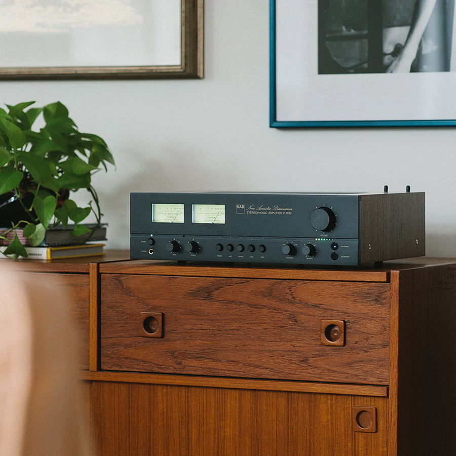 NAD C 3050 облачен в корпус с деревянными панелями, выполненными из сатинированного ореха, и оснащена стрелочными индикаторами уровня сигнала с мягкой светодиодной подсветкой. Внешность новинки словно пришла к нам из золотой эры аудио – 1972 года, когда появилась компания NAD Electronics.