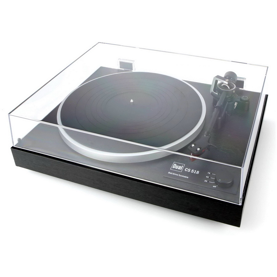 Dual CS 518 оснащен пассиковым приводом от двигателя постоянного тока, обладающего низким уровнем вибраций. Для оптимального демпфирования двигателя от шасси он установлен через резиновые прокладки. Опорный диск проигрывателя выполнен из алюминия методом литья под давлением и установлен на подшипник из закаленной стали. Корпус подшипника сделан из латуни. Dual CS 518 комплектуется резиновым ковриком толщиной 2,5 мм, дополнительно гасящим вибрации от привода. В модели применено электронное переключение скорости вращения пластинки 33, 45 или 78 оборотов в минуту.