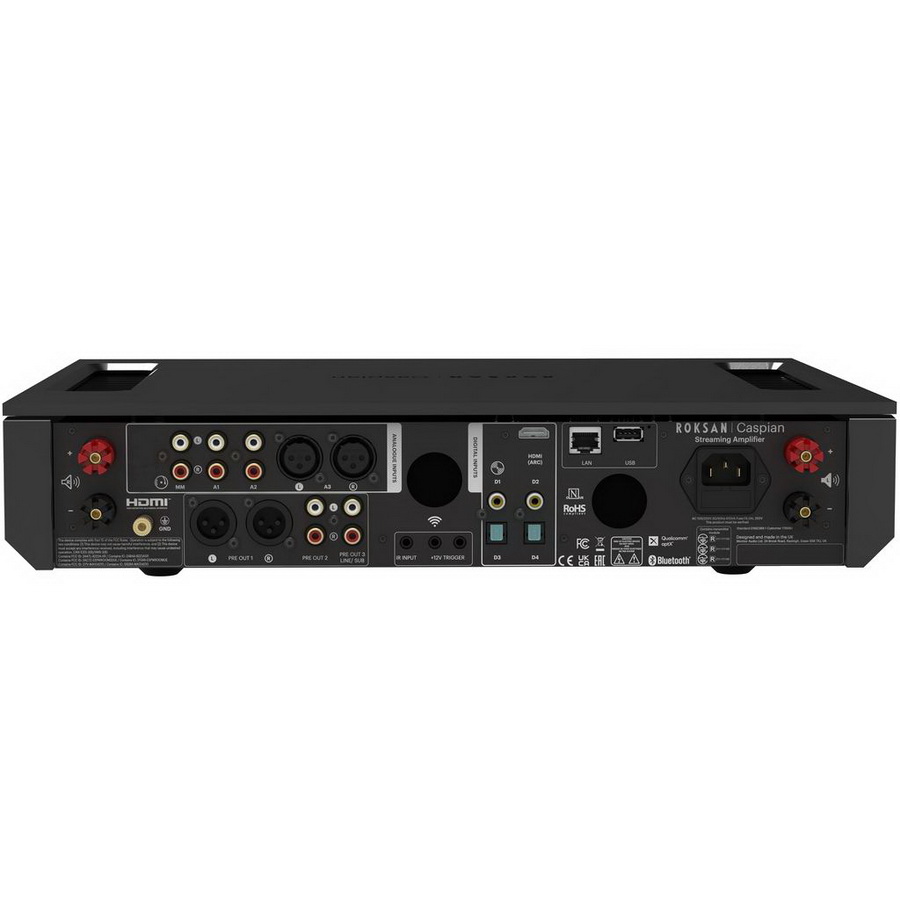 Набор интерфейсов Roksan Caspian 4G Streaming Amplifier включает коаксиальный и оптический аудиовходы, порт HDMI eARC, вход для MM-фонокорректора, а также балансные и небалансные аналоговые линейные входы. Поддерживаются и беспроводные технологии Bluetooth и Wi-Fi, функционирующие через встроенную антенну. Caspian Streaming Amplifier G4 использует сеть на основе BluOS, поддерживая воспроизведение высококачественных аудиофайлов с параметрами до 24 бит/192 кГц из потоковых сервисов и домашних коллекций.