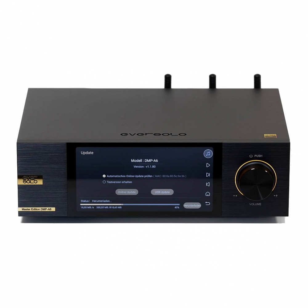 Eversolo DMP-A6 Master Edition — мощный, интуитивно понятный и стильный стример. Аппарат позволяет с лёгкостью транслировать музыкальный контент с превосходным качеством звука и всё это управляется с помощью высококачественного ЖК-экрана, эргономичного интерфейса или из специального мобильного приложения. Декодирование звука Eversolo DMP-A6 Master Edition возложено на два чипа ЦАП ESS ES9038 Q2M, высокопроизводительную модель, широко признанную аудиофилами. Он также поддерживает аудиопотоки высокого разрешения до PCM 32 бит 768 кГц и DSD512, а также декодирование файлов MQA.
