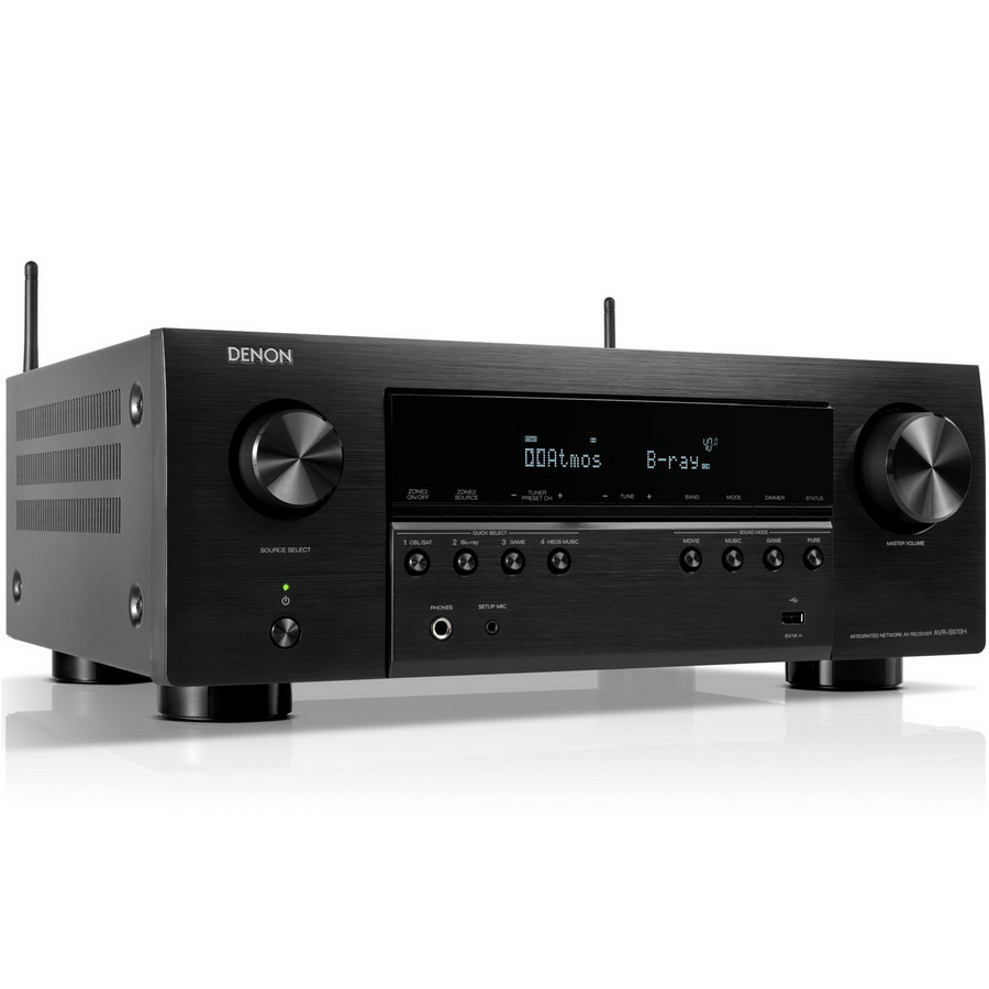 Также предусмотрена функция апскейла входного сигнала более низкого разрешения до 8K. Кнопки прямого выбора источников сигнала и пользовательских настроек, расположенные на передней панели, упрощают управление AV-ресивером. Denon AVR-S970H оснащен декодерами Dolby Atmos и DTS:X, а также процессорами для формирования объемного звука из обычного многоканального. Для настройки аудиосистемы в зависимости от условий прослушивания предусмотрены технологии Audyssey MultEQ и Dynamic EQ/Volume.