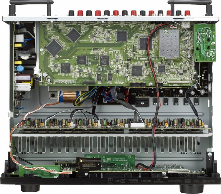 Каждый из семи дискретных усилителей выдает 180 Вт при 6 Ом, 105 Вт (8 Ом) и может работать с 4-омной нагрузкой. Для экономии электроэнергии имеется режим ECO. Модель имеет на борту Bluetooth-модуль, Wi-Fi (2,4 ГГц /5 ГГц) и поддерживает AirPlay. При подключении к локальной сети через LAN-порт или WLAN воспроизводятся хранящиеся на компьютерах/серверах Hi-Res-форматы, включая AIFF, FLAC, WAV (до 24 бит/192 кГц), ALAC (до 24 бит/96 кГц) и DSD (до 5,6 МГц). Доступно веб-радио и online-сервис Spotify Connect.