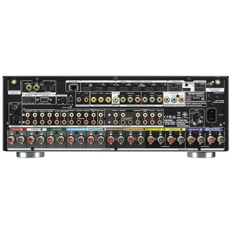 В Marantz SR6012 имеются восемь входов HDMI 2.0a, которые работают с Ultra HD (60 Гц), 3D-видео, HDR, поддерживают протокол защиты HDCP 2.2, цветовую субдескритизацию 4: 4: 4 Pure Colour, видео 21:9, цветовое пространство BT.2020 и прочие функции. При этом Marantz SR6012 может масштабировать любое видео до разрешения 4K.