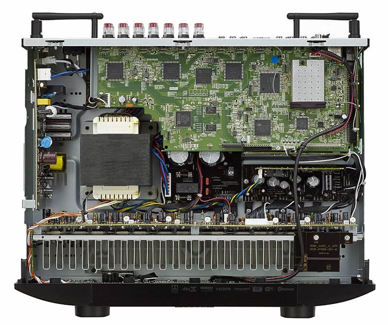 Аппарат умеет работать с актуальными на данный момент форматами 3D-звучания Dolby Atmos (в 5.1.2-конфигурации) и DTS:X, а также с DTS Neural:X. Для калибровки АС применяется система Audyssey MultEQ (в пакет входят технологии Dynamic Volume и Dynamic EQ для оптимизации уровня сигнала и АЧХ), а для калибровки видео используется профессиональный стандарт ISF. За отдельную плату можно скачать приложение Audyssey MultEQ Editor для тонкой корректировки результатов работы системы MultEQ.