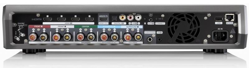 Пять портов HDMI 2.0a позволяют напрямую подключить до четырех видео- или медиапроигрывателей с поддержкой 4K Ultra HD и отправить сигнал на TV-панель. Имеющийся на борту процессор рассчитан на окружающие форматы вплоть до Dolby TrueHD и DTS-HD Master Audio. Для композитного или компонентного видео не предусмотрено ни входов, ни выходов, но по аналогу можно завести в систему аудиосигнал – для него выделена стереопара линейных входов RCA и одно гнездо под 3,5-миллиметровый «джек». Дополняют коммутатор оптический и цифровой входы, USB и интерфейс Bluetooth.