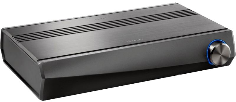 Рассматриваемый далее компонент Denon HEOS AVR – пожалуй, самый многофункциональный «кубик» нашего беспроводного конструктора. Кнопок на лицевой стороне у него нет вообще – только ручка регулировки громкости. Но, несмотря на лаконичный внешний вид, перед нами полноценный AV-ресивер, на базе которого собирается весьма мощный домашний театр. Наличие пяти встроенных усилителей и выход на сабвуфер позволяют построить классический комплект 5.1, но можно задействовать и активную акустику Denon HEOS. Мы опробовали как раз комбинированный вариант – с тылами на базе беспроводных Denon HEOS 3 HS2, но с традиционными фронтами, центром и сабвуфером.