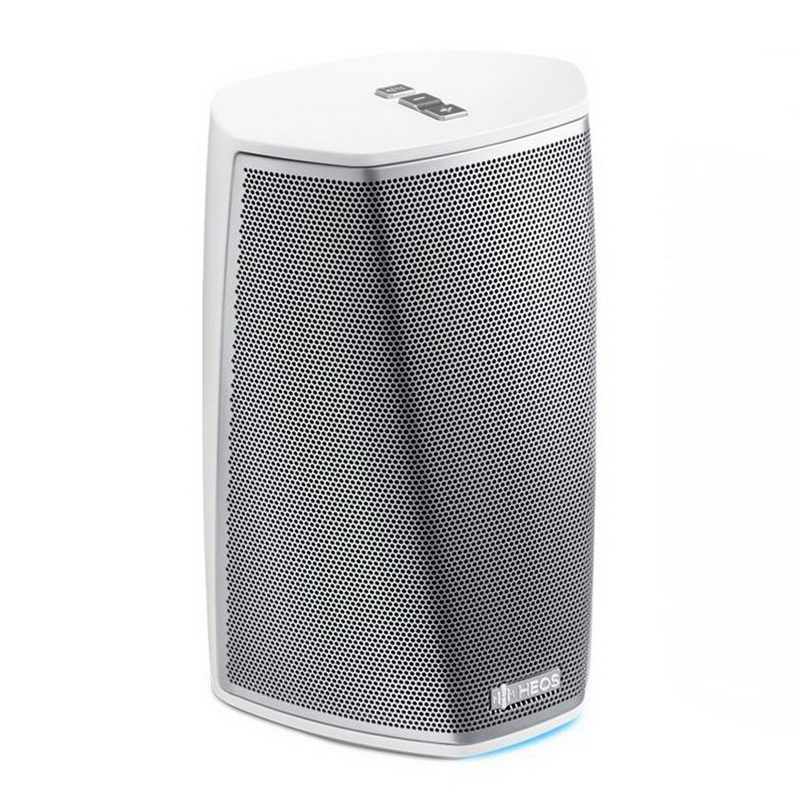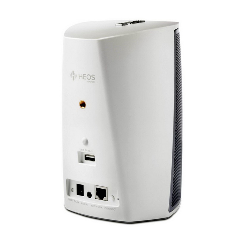 Denon HEOS 1 HS2 можно подключить к компьютерной сети по Wi-Fi или Ethernet, и она сможет воспроизводить музыкальные файлы со всех доступных устройств. Также колонка может принимать интернет-радио, и предоставлять доступ к популярным on-line сервисам, таким, как Spotify, Deezer, Tidal и другим. При использовании для управления системой планшета или смартфона на его дисплее будет отображаться информация о звучащей композиции и обложка выбранного альбома. HEOS 1 можно использовать как самостоятельно, так и в составе мультирум-системы на базе АС данной серии. Кроме того, весьма интересной является возможность объединения двух таких колонок в стереопару – благодаря отсутствию задержки транслируемого сигнала в результате можно получить очень неплохой стереозвук. АС имеет линейный вход на разъеме mini-jack и USB-порт для портативных накопителей, причем подсоединенное к нему запоминающее устройство будет доступно и для других HEOS-компонентов в сети.