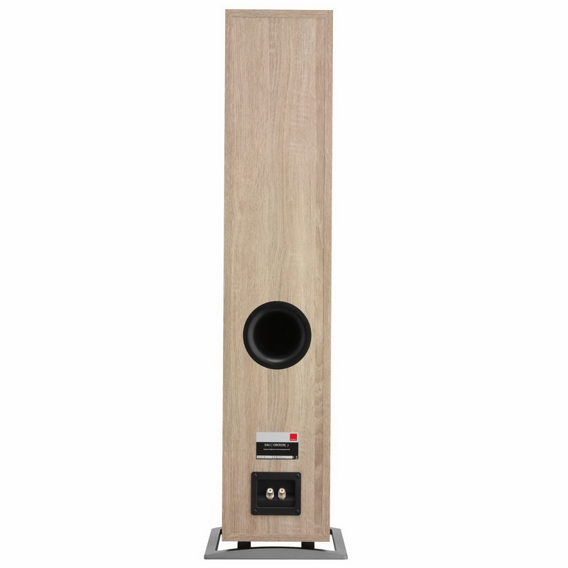 Как и все «Обероны», топовая модель обладает такими важными достоинствами, как закругленные грани, сокращающие дифракцию звука и связанные с ней искажения. Массивные алюминиевые детали дополняют оформление передней панели, гибкость в применении обеспечивают съемные защитные решетки, а прочное алюминиевое основание служит для большей устойчивости. Узкую переднюю панель Dali Oberon 7 украшает полированная отделка лаком, а боковые панели из MDF, покрытые ламинатом мебельного качества с рисунком "черный ясень", "светлый дуб", "темный орех" или матовой белой отделкой, также придают колонкам привлекательный внешний вид. Внутри корпус упрочнен переборками, порт фазоинвертора выведен на переднюю панель, имеются колоночные разъемы премиум качества (одна пара).