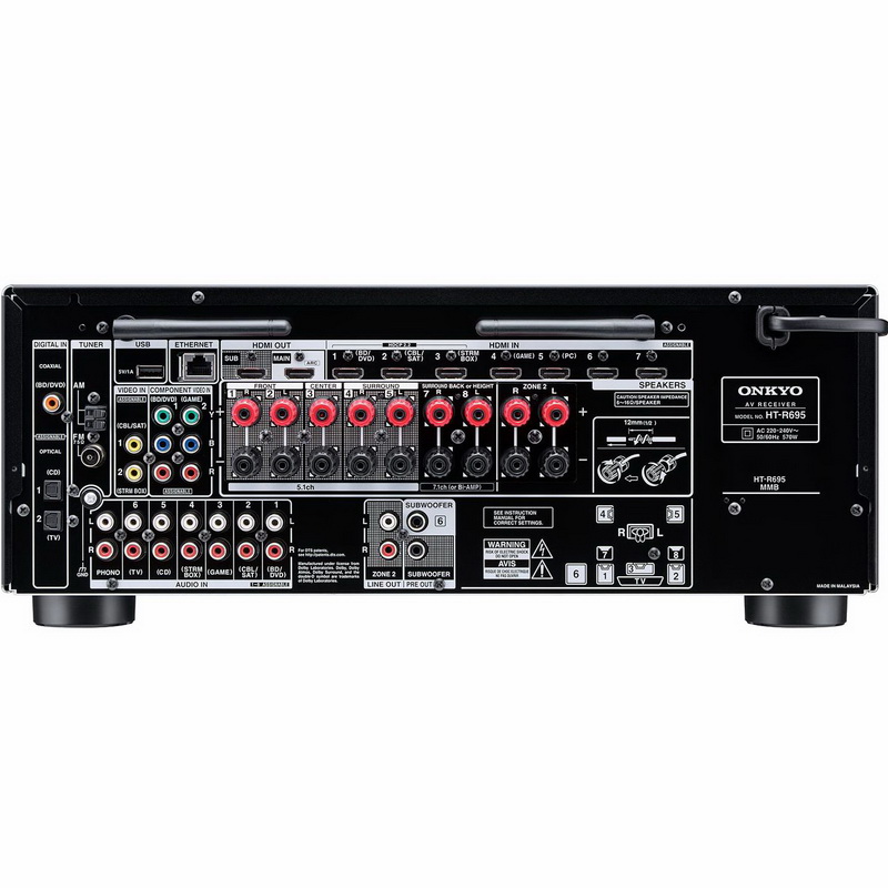 Имеется поддержка 4K/60 Гц видео с протоколом защиты HDCP 2.2. Апсейлинг работает по технологии Qdeo от Marvell. Новинка имеет 7 HDMI входов (1 на передней панели) с поддержкой 4K/60 Гц, и обеспечена выходом на вторую зону вещания. Как и полагается, ресивер оснащен множеством входов/выходов: компонентный видеовход и выход, три композитных видеовхода и один выход, три цифровых аудиовхода, шесть аналоговых входов, вход фонокорректора, два параллельных выхода на сабвуферы (Pre-Outs). Выходы S/PDIF оснащены схемой ФАПЧ (PLL) для подавления джиттера. Возможно подключение фронтальных каналов по биампинговой схеме.