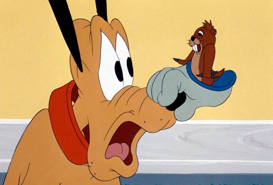 Плуто вначале был малозначимым персонажем до 1934, когда диснеевский аниматор Норм Фергюсон дал собаке главную роль в мультфильме «Playful Pluto» (Игривый Плуто). В нём Плуто запутывается в липкой бумаге для мух, и Фергюсон значительно увеличил длительность этого эпизода. Эпизод стал классикой, демонстрируя, как диснеевские художники могут взять самые простые обстоятельства и сделать сцену смешной через поведение персонажа.