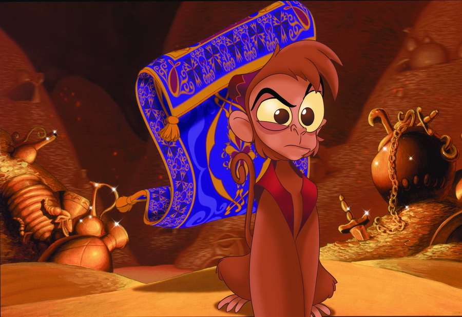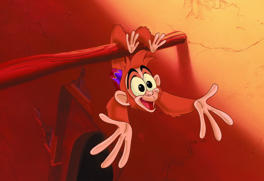 Абу был озвучен Фрэнком Уэлкером — актёром, специализирующемся именно на озвучивании животных (среди прочего, он озвучивал обезьян в фильме «Индиана Джонс: В поисках утраченного ковчега» (1981)).