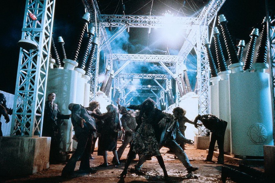 Когда живые мертвецы начинают погибать от тока высокого напряжения, в кадре появляется зомби Майкл Джексон из фильма «Триллер» (1983).