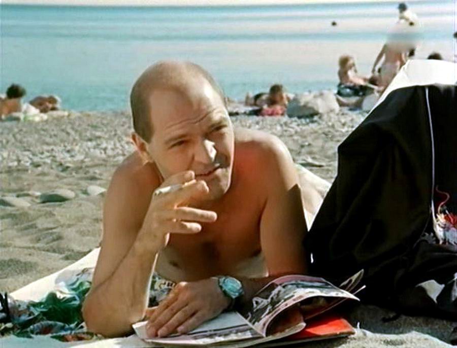 Сергей знакомится на море с девушками, что ему, якобы работающему по престижной профессии (он то пилот, летающий зарубеж, то работник Внешторга), легко удаётся. Его заинтересовывает женщина, одиноко сидящая на пляже с попугаем в клетке. Она не особенно настроена знакомиться, но охотно рассказывает о своём сыне — круглом отличнике, которого даже показывали профессору из Новосибирского Академгородка. Здесь же Сергей знакомится с ужасно наглым пареньком, который знает, кем на самом деле тот работает.