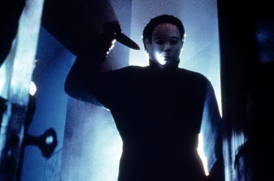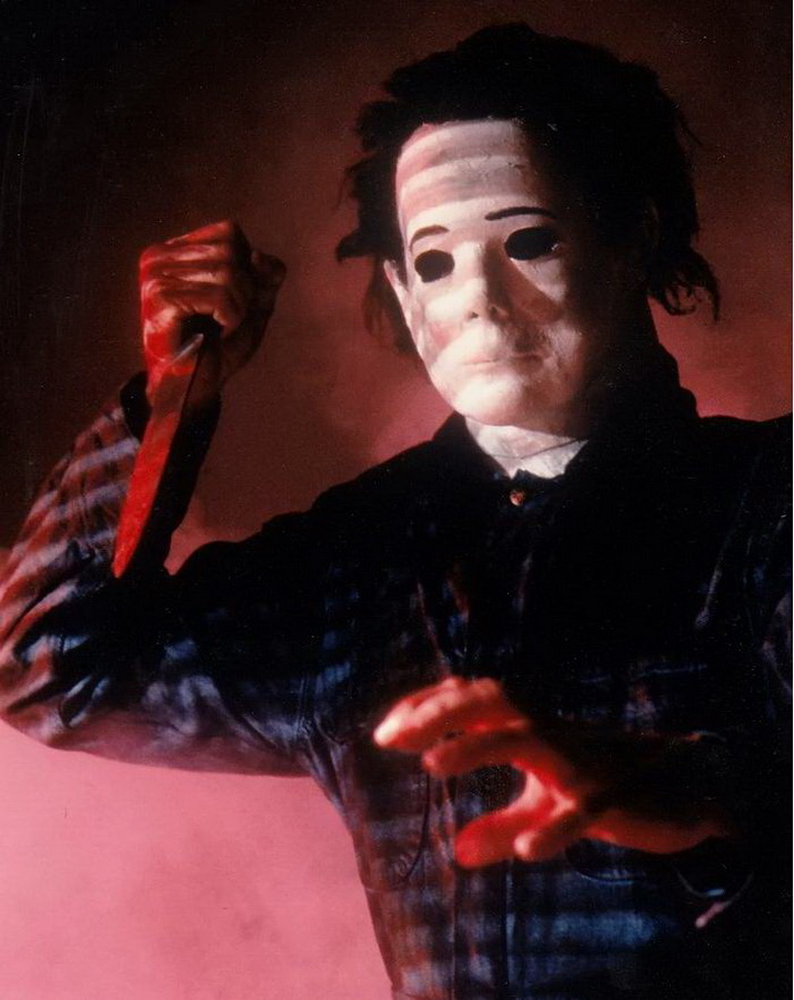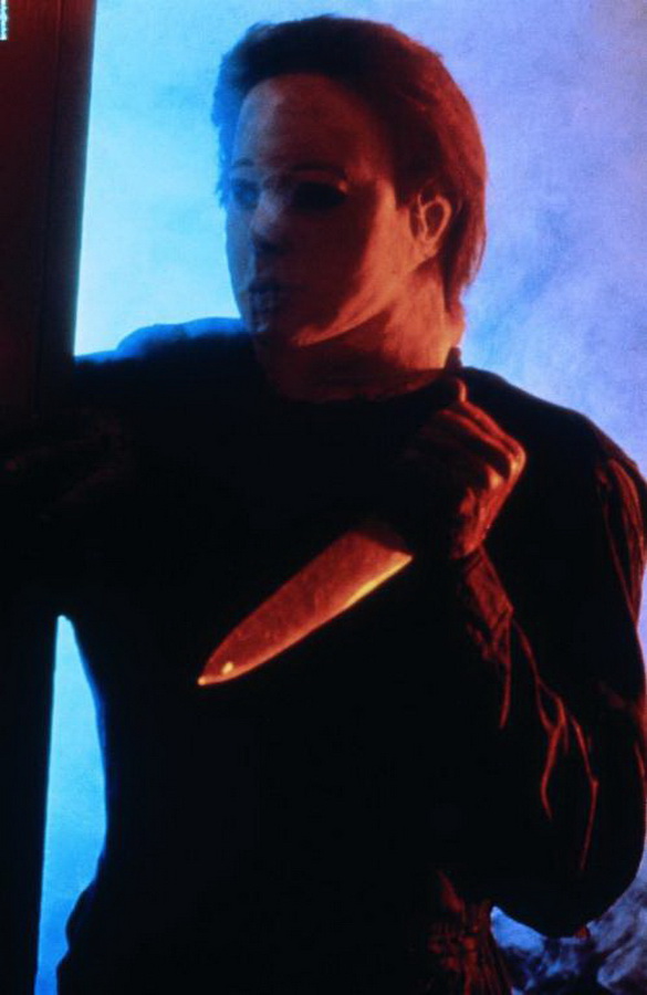 В школе, когда Майкл нападает на Лумиса, у его маски белые волосы. Эта сцена снималась одной из первых. Предполагалось задействовать оригинальную маску Майкла из первого «Хэллоуина», но за прошедшие реальные десять лет ее волосы окончательно выцвели. На практике же Майкл-«блондин» не показался создателям впечатляющим, поэтому пришлось сделать новую маску, а заодно переснять несколько сцен.