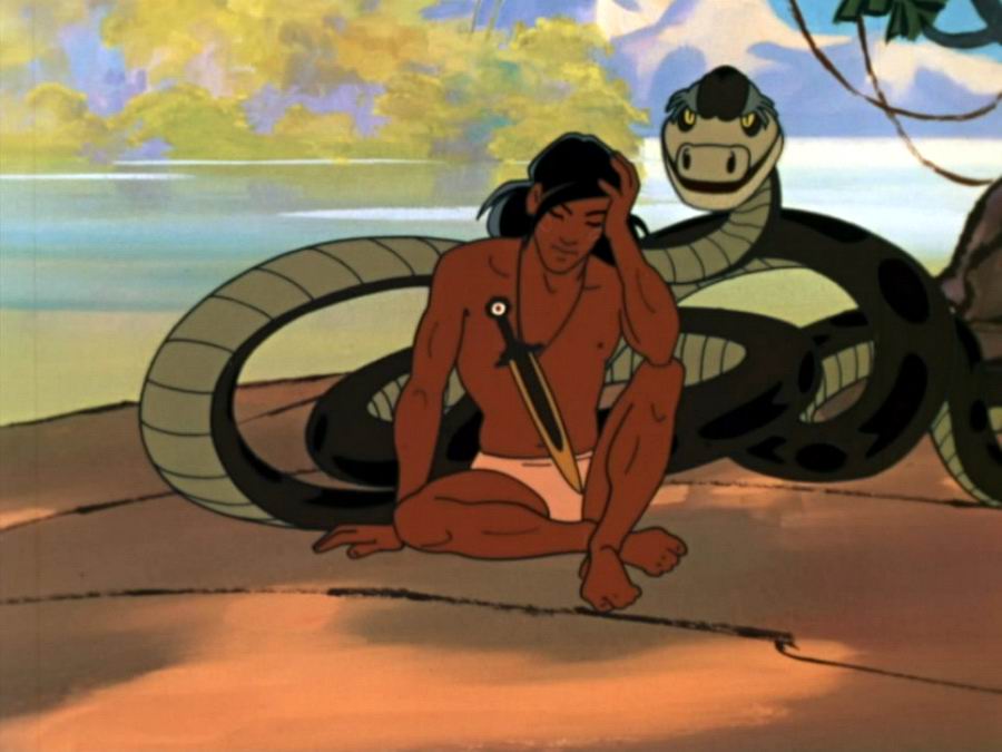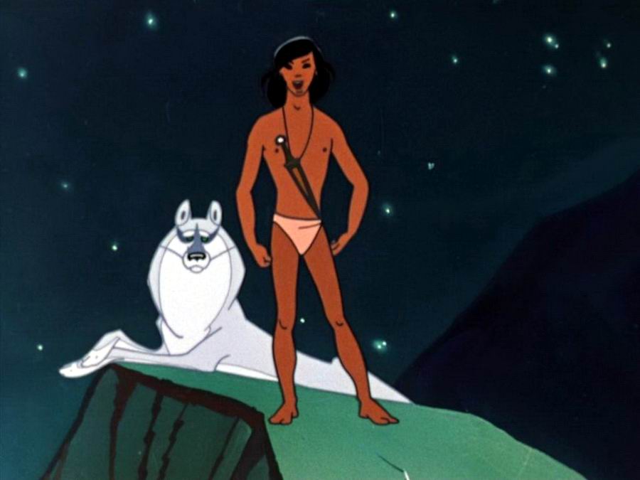 История о мальчике, воспитанном волчьей стаей. Он стал своим в джунглях, победил врага — тигра Шерхана, совершил ещё многие подвиги и, в конце концов, ушел к людям.
