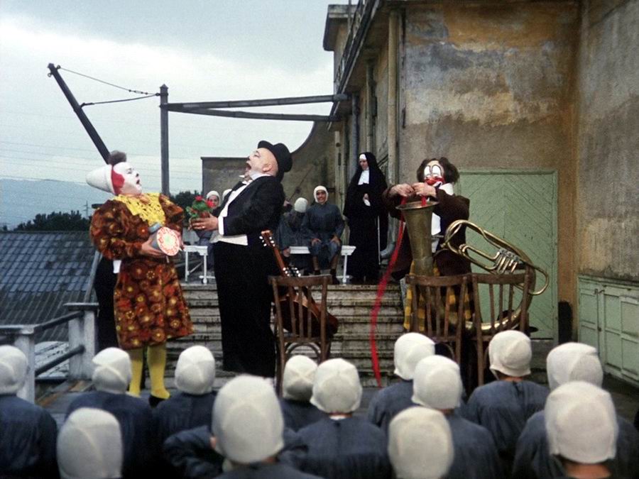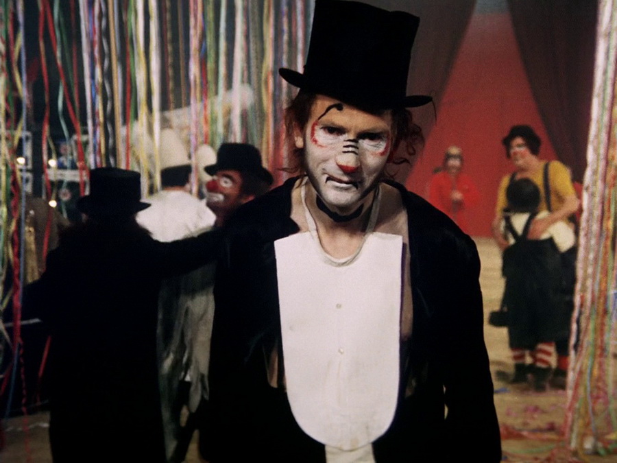 Фильм о цирке, где царит атмосфера игры и казни, праздника и бойни, изящества и безумия и — КЛОУНЫ! Могущественный Белый Клоун и Рыжий — воплощение покорности. В картине клоуны делают все, что им хочется: ломают, поджигают, катаются по полу, а зритель лишь восхищается и аплодирует.