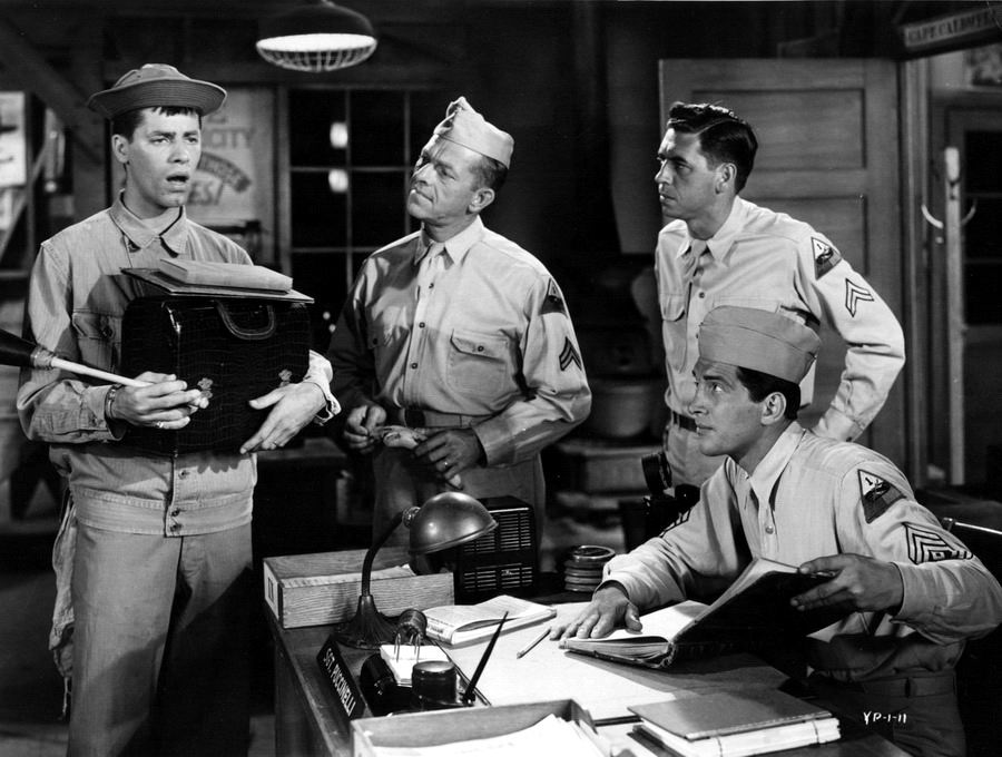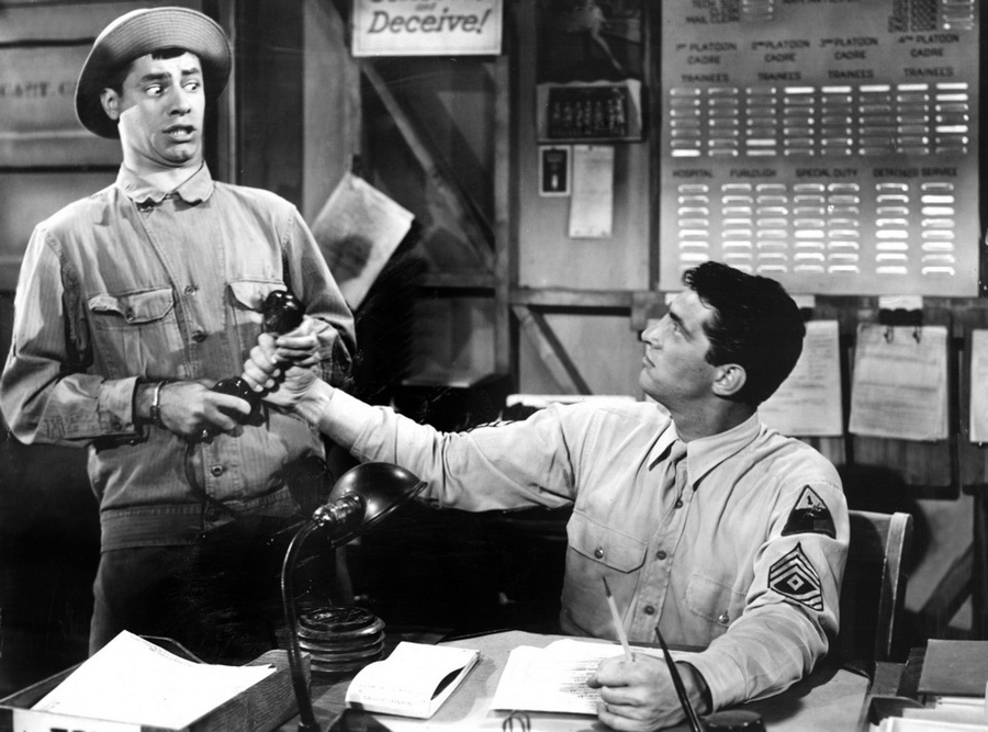 Джерри Льюис играет несчастливого солдата, а Дин Мартин удачливого старшего сержанта неряшливого взвода на тренировочной базе в удаленном пограничном гарнизоне.