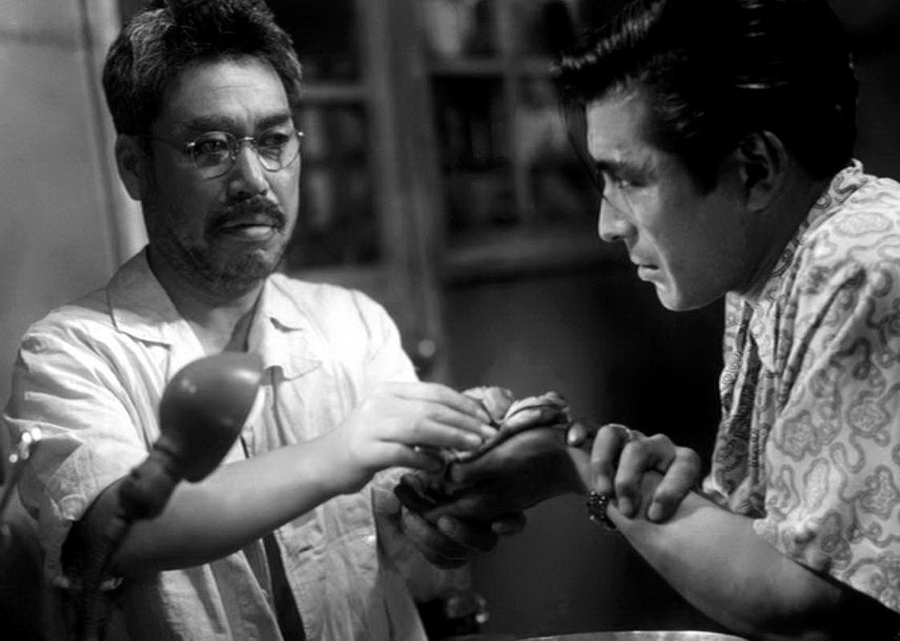 В нищем и грязном районе, в унылом бараке, превращенном в больничку, ведет прием пациентов врач. Однажды к нему обращается за помощью молодой хулиган, раненный в драке с местными гангстерами.
