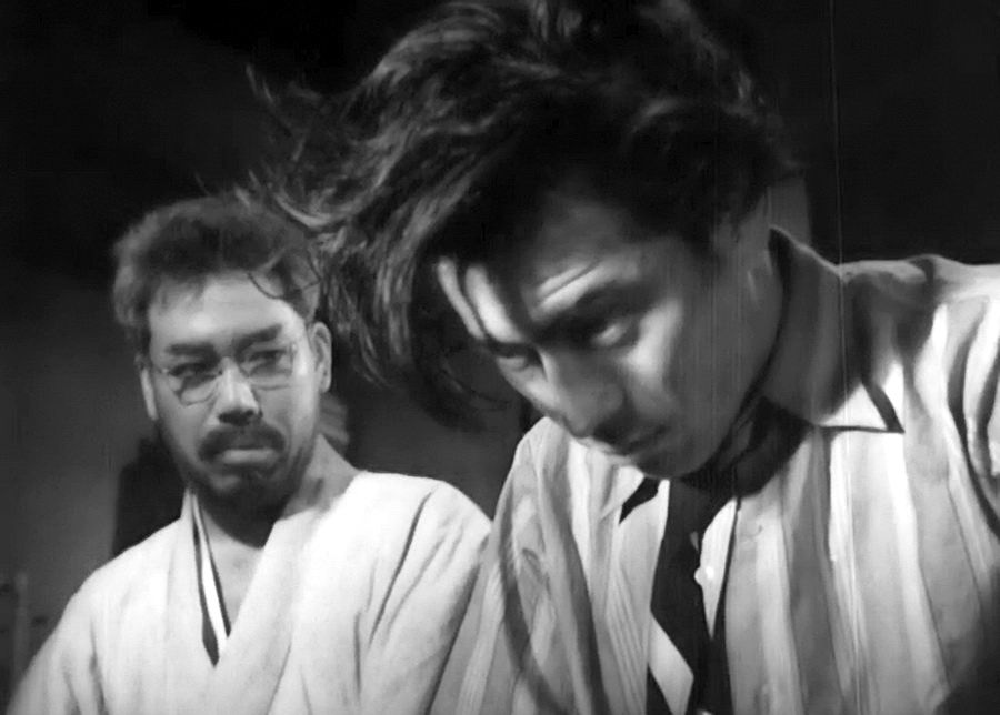 Когда вновь появляются гангстеры, «Пьяный ангел», не желая подчиниться законам преступного мира, законам злобы, бросается на защиту наивной и доверчивой медсестры.