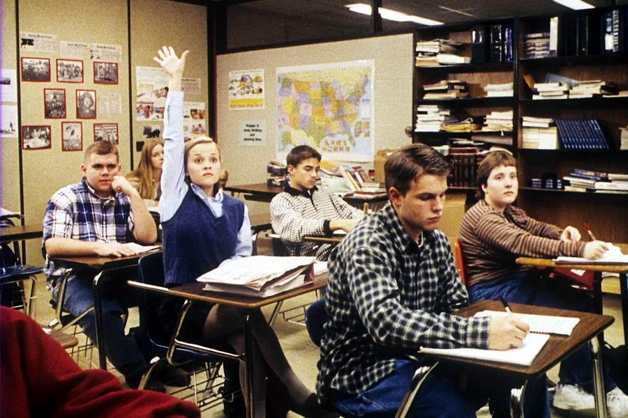 В сценах в спортзале участвовали настоящие учащиеся старших классов, однако их не хватало, так как уже наступила пора экзаменов, а многие учащиеся обнаружили, что работать в массовке – занятие долгое и зачастую нудное. По сюжету требовалось, чтобы все места на трибунах в спортзале были заняты, и Александр Пэйн попросил актёров массовки перед каждым новым дублем сесть на другое место – и так два-три раза. Впоследствии в монтажной сделали так, будто все места на трибунах заняты.