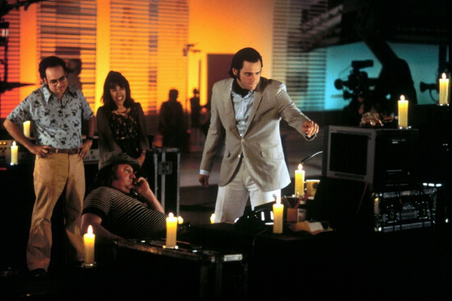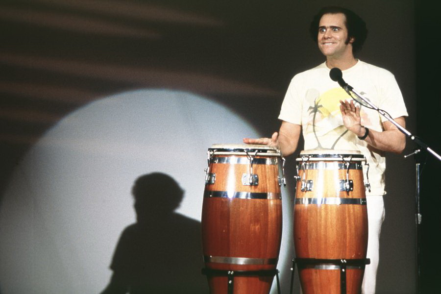 История прослеживает путь Кауфмана от детства до комедийных клубов и выступлений на телевидении, которые сделали его знаменитым. Особое внимание в фильме уделяется различным внутренним шуткам, аферам, розыгрышам и случаям, которыми прославился Кауфман, в частности, его многолетней «вражде» с рестлером Джерри «Королем» Лоулером и его исполнению роли безвкусного клубного певца Тони Клифтона.