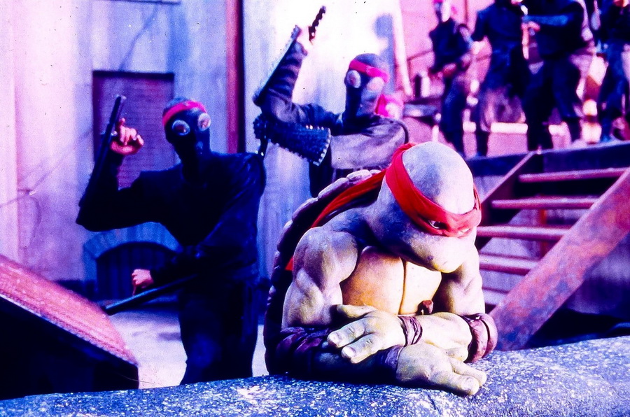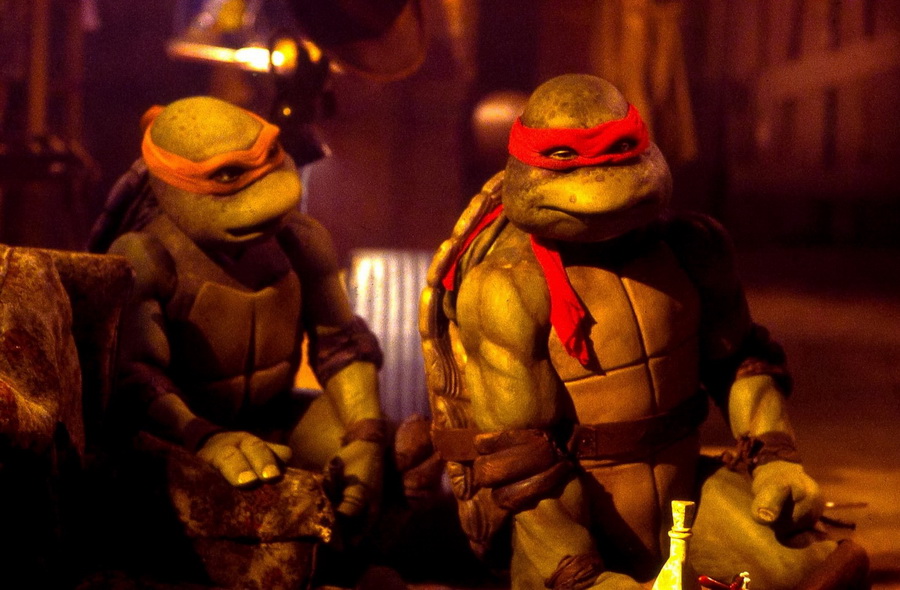 Чтобы скрыть, какими на самом деле громоздкими были костюмы черепашек, сцены диалогов снимали на скорости 23 кадра в секунду, так что когда их затем проигрывали на обычной скорости 24 кадра в секунду, они смотрелись более отчётливо. По этой же причине сцены боёв снимали на скорости 22 или 23 кадра в секунду.