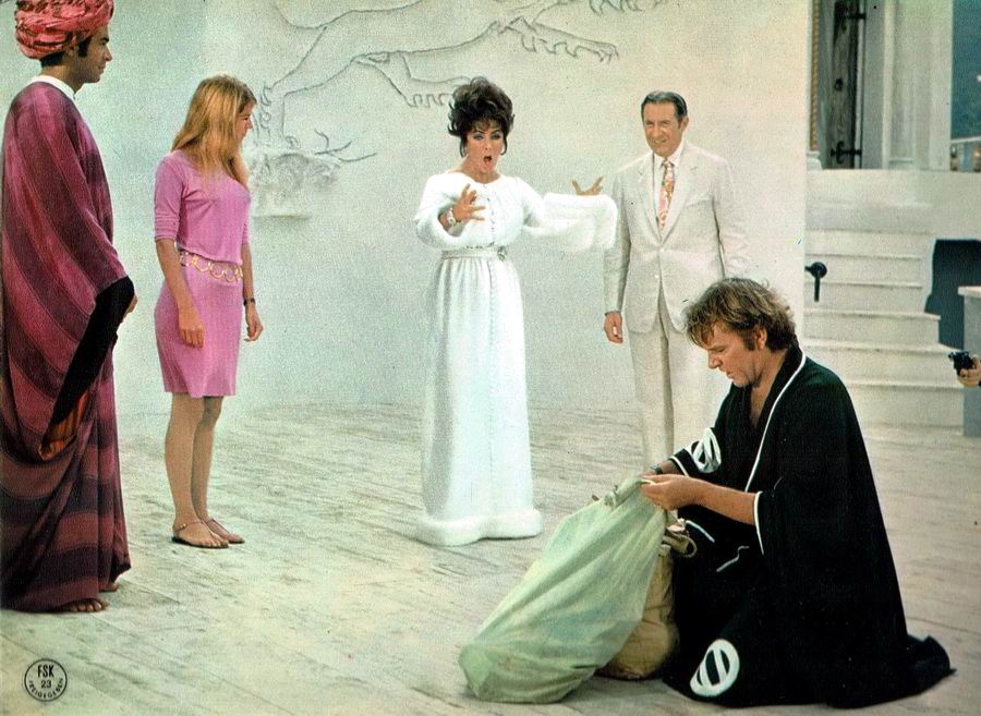 Элизабет Тейлор, Ричард Бёртон, Ноэл Кауард, Джоанна Шимкус, Майкл Данн, Ромоло Валли, Фернандо Пьяцца