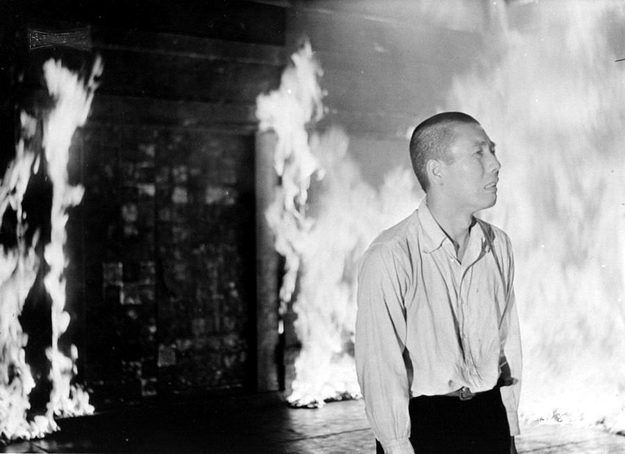 В центре картины юноша, еще только нащупывающий свой путь, но видящий отчетливо направление. Его размышления, чувства, то, как именно он достигает принятия решения сжечь храм - все передано более интуитивно, как свойственно японскому кинематографу. История о пути, на котором он встречает разных людей: монахов, мать, женщин, циников, - но не задерживается, не останавливается надолго, продолжая идти по своей одному ему ясной дороге.