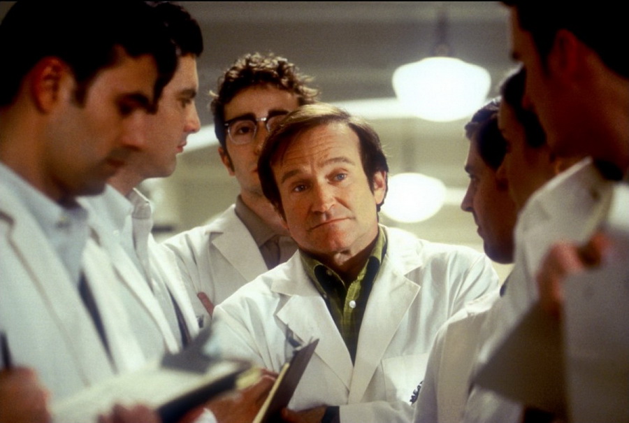 В фильме Хантер «Патч» Адамс изображён мужчиной в возрасте, довольно поздно решившим обучаться медицине. В реальности Адамс получил диплом врача в 26 лет.