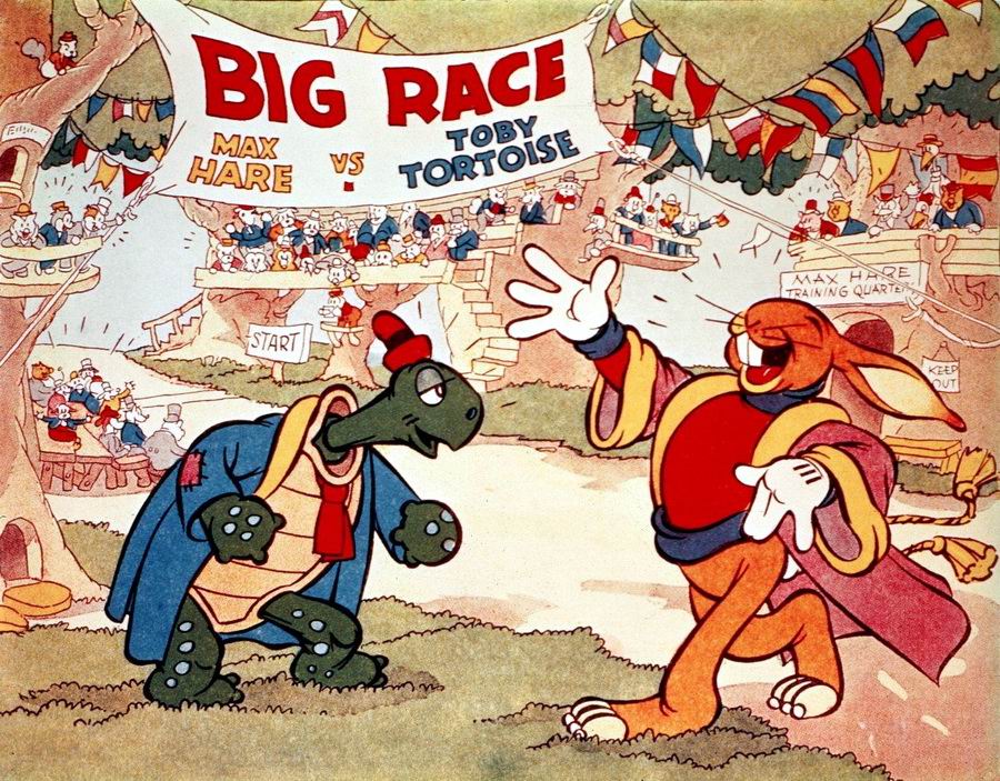 Черепаха Тоби и заяц Макс решили посоревноваться в беге. Так кто же первым придет к финишу: хвастливый заяц или хитрая черепаха?