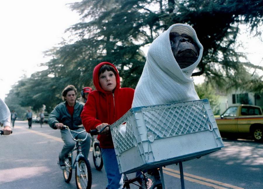 Кадр Эллиота и Инопланетянина, летящих на велосипеде на фоне луны, стал торговой маркой киностудии «Amblin Entertainment».