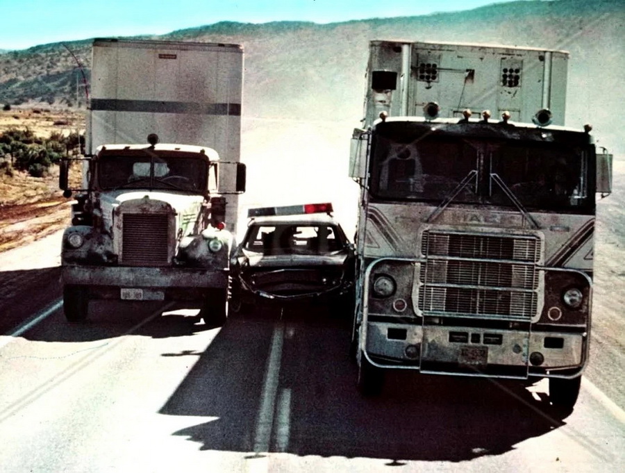 Тягач Резинового Утенка — Mack RS712LST. В данный момент один из грузовиков снимавшихся в фильме является экспонатом в Музее Транспорта и находится в Сент-Луисе.
