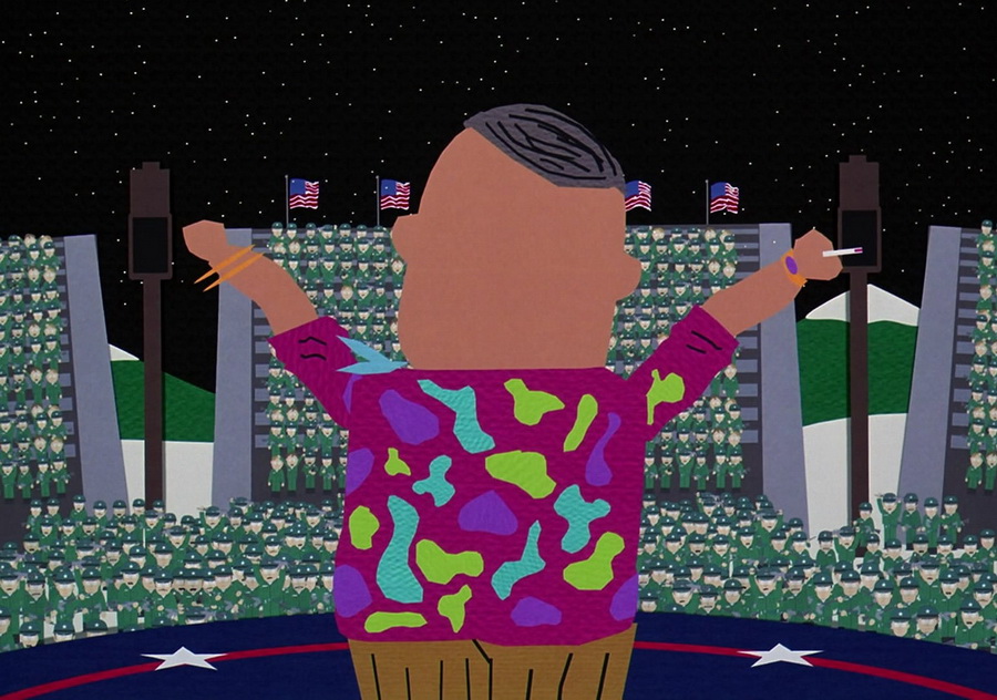 Перед эпизодом, когда Кайл прячет на чердаке Айка, перед его домом проходит отряд солдат, в котором марширует Иисус.