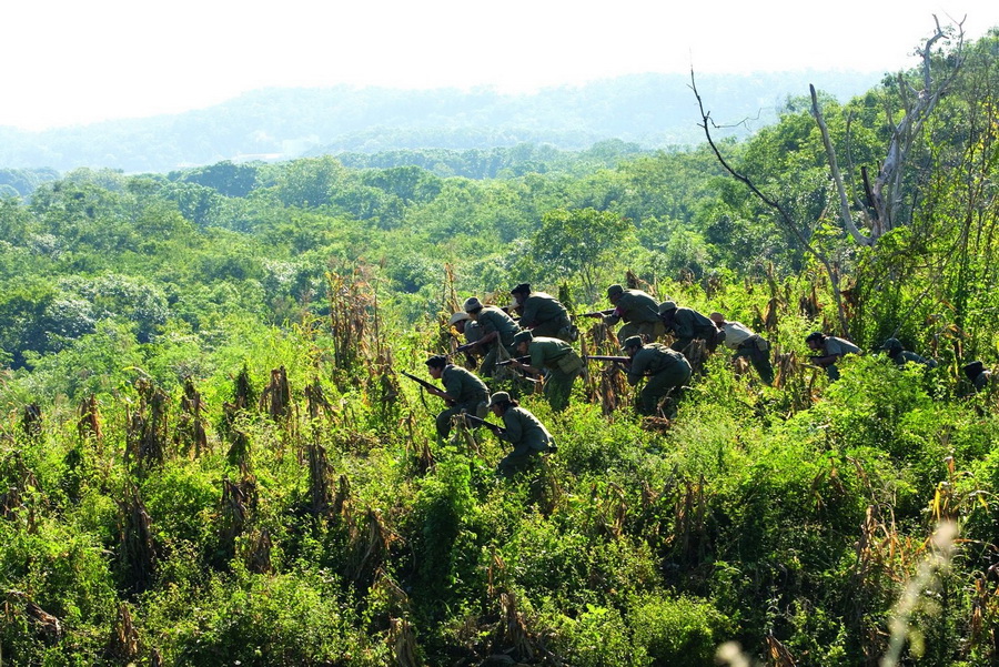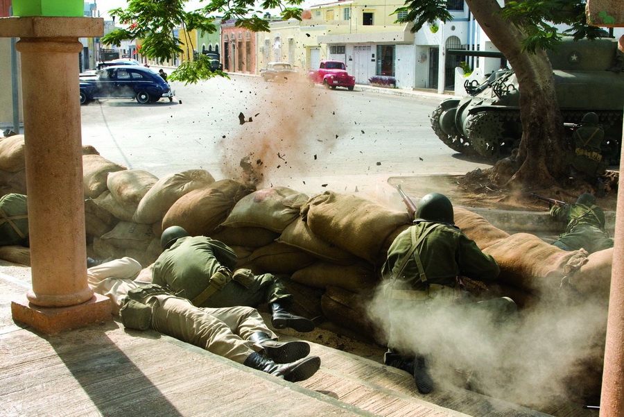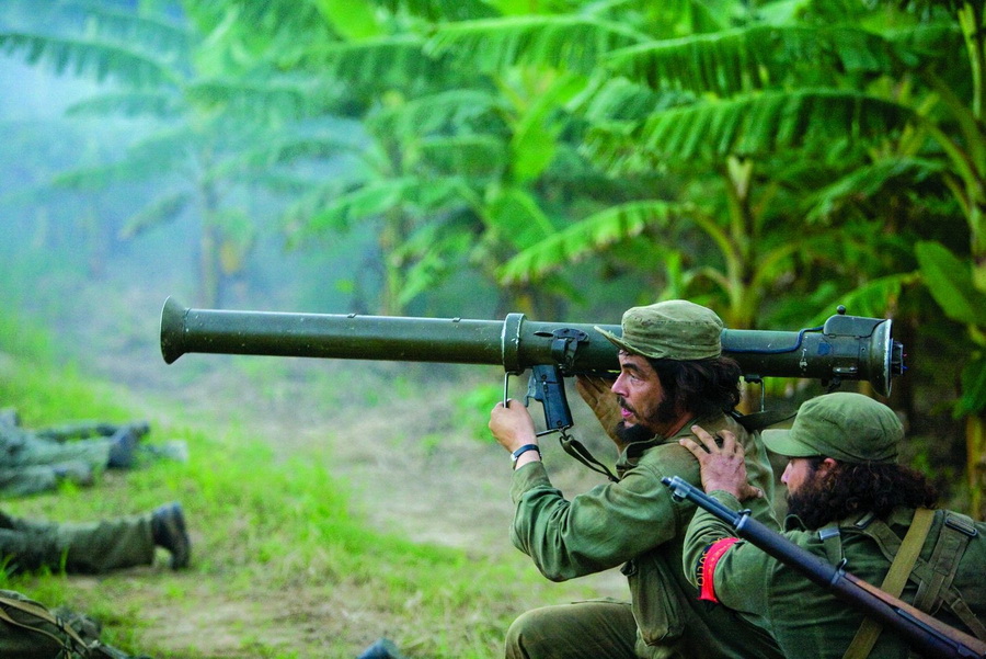 В одной из сцен Че выхватывает у товарища базуку и первым же выстрелом разносит казарму. Вначале планировалось, что Че сначала промахнётся и попадёт в казарму только со второй попытки, однако световой день кончался, и оператор убедил режиссёра Стивена Содерберга выстрел «в молоко» из сценария убрать.