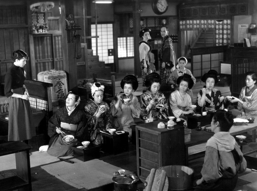 Пожилая гейша работает в одном из «веселых домов» в Киото. К ней из Токио возвращается дочь, которая начинает работать в том же месте. Вскоре у обеих возникают постоянные отношения с одним и тем же мужчиной, молодым врачом. Дочь узнает об отношениях матери с этим человеком и разрывает отношения с ним.