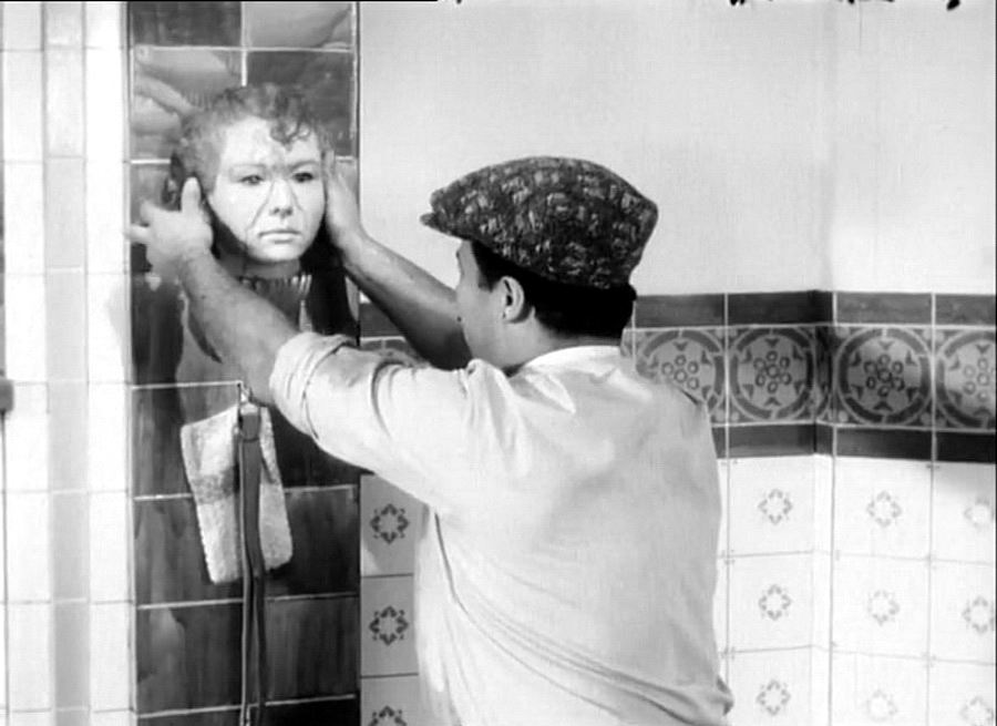 Возможно впервые в кино фильм снят наоборот — от смерти человека до его рождения. Начинается с того как голову главного героя, отрубленную на гильотине, приставляют обратно, и он идет задом наперед к своей жене, которую в порыве ревности он разрубил на части.