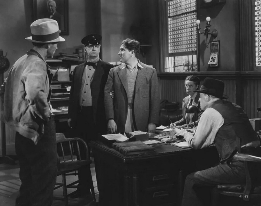 Неожиданно на проселочной дороге путь герою преграждает заместитель шерифа небольшого городка со словами: «Вы подозреваетесь в убийстве». Невиновный Джо допрошен и заключен под арест. Основным предлогом его задержания является присутствие в его карманах соленых орехов арахис Жители городка, узнав, что преступник пойман, требуют от шерифа немедленно линчевать «негодяя», получив отказ, толпа сжигает полицейский участок.