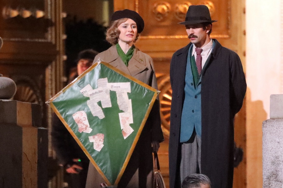 Когда писался сценарий для самого первого фильма «Мэри Поппинс» (Роберт Стивенсон, 1964), Уолт Дисней лично предложил роль главной героини актрисе Джули Эндрюс. Та ответила, что беременна и принять участие в съёмках не сможет. Дисней (1901-1966) так хотел, чтобы роль Мэрри Поппинс исполнила именно Эндрюс, что отложил начало съёмок до того момента, когда актриса будет в состоянии вернуться на съёмочную площадку. Аналогичная история произошла и с этим фильмом. Когда проект был объявлен, съёмки пришлось отложить из-за беременности Эмили Блант, утверждённой на роль главной героини.
