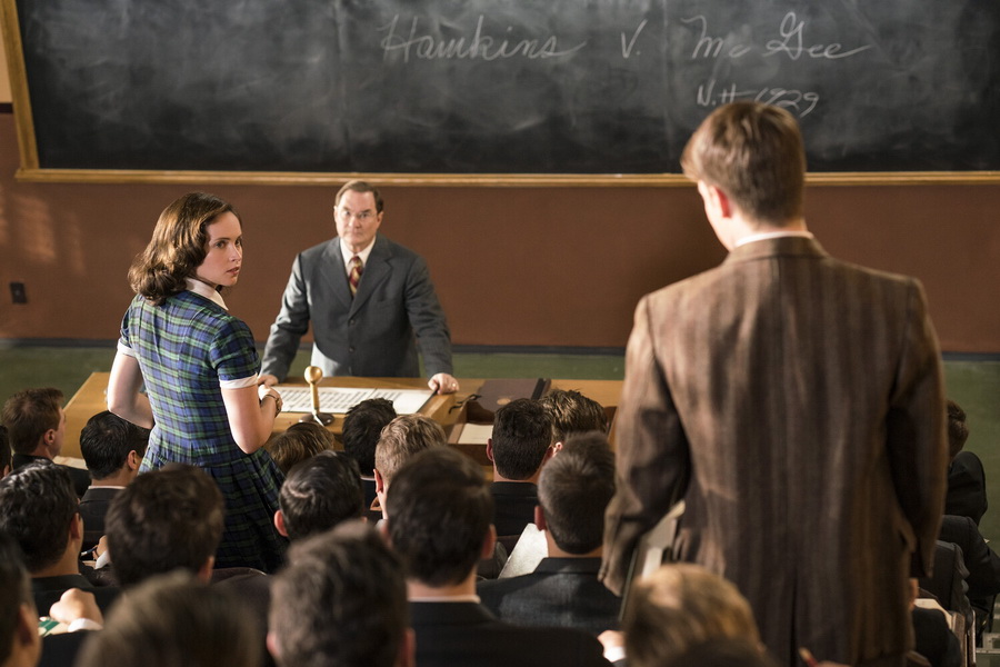 В сцене, когда Рут Гинзбург впервые заходит в аудиторию Гарвардской юридической школы, где она стала одной из девяти женщин в классе из около 500 человек, звучит знаменитый гарвардский гимн «Десять тысяч мужчин Гарварда».