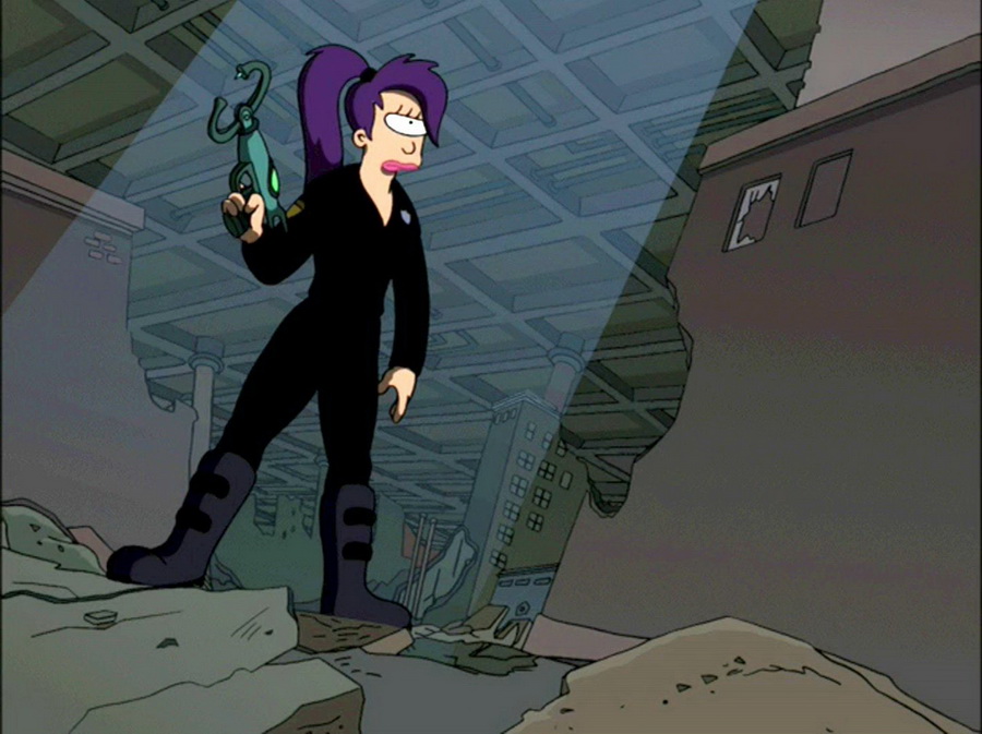 В первой серии, когда Фрай очнулся в 3000-тысячном году, на стене, в кабинете Лилы, висит плакат с рабочим и надписью «You do what you gotta do» — это калька со знаменитого нью-йоркского слогана 2000-х: «You do what you wanna do».