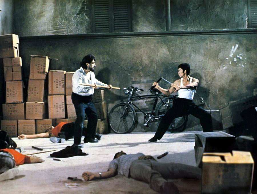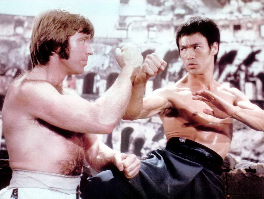 Сцена сражения Брюса Ли с Чаком Норрисом в колизее снималась в павильоне студии Golden Harvest.