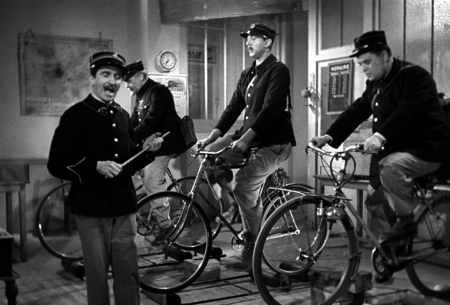 В маленьком почтовом отделении три почтальона по приказу своего начальства учатся доставлять почту, не слезая с велосипеда. Цель этой тренировки — сэкономить двадцать минут, необходимые для того, чтобы успеть к прилету почтового самолета.
