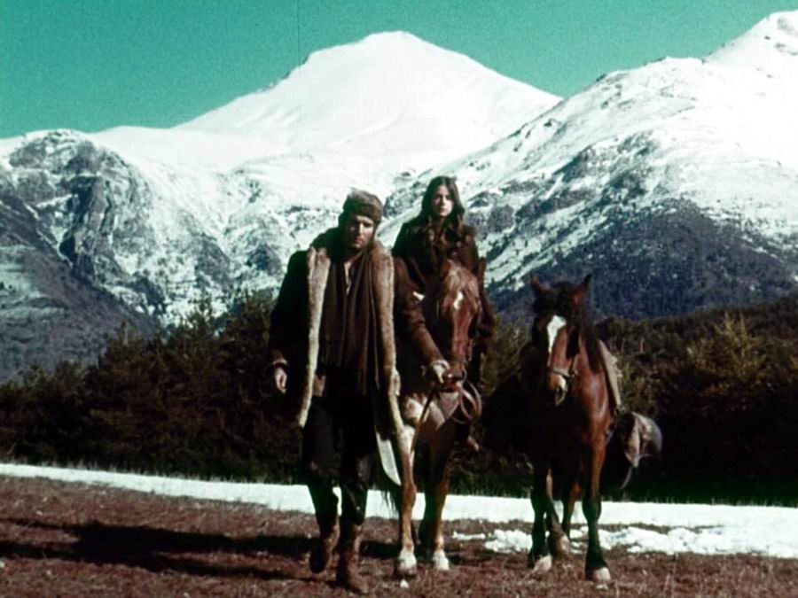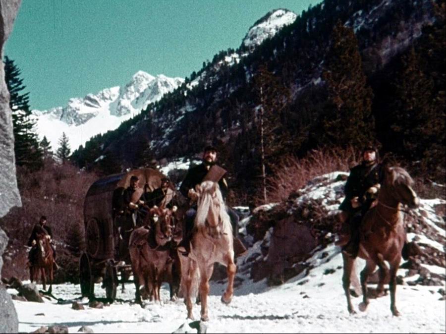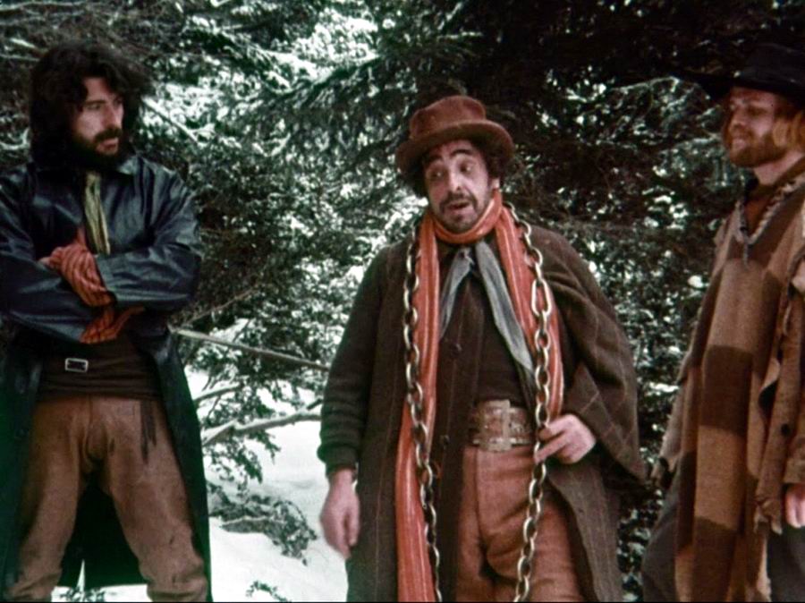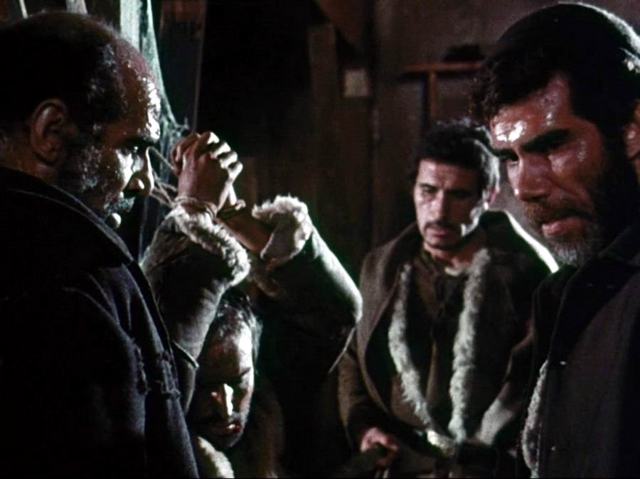 Солдат и его дочь везут семь заключённых в тюрьму. Все заключённые прикованы цепью друг к другу. В бою с бандитами они теряют повозку и лошадей. Теперь их ждёт долгий и трудный путь через высокие снежные горы.
