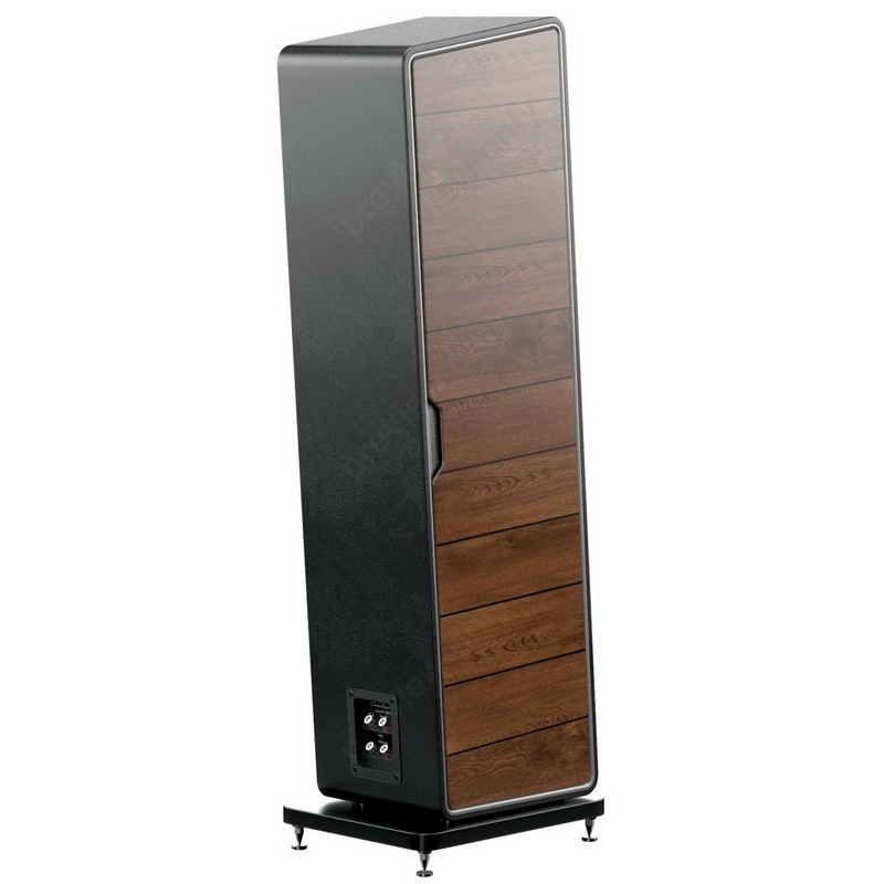 Частоты раздела кроссовера 250 и 2500 Гц вполне традиционны для трехполосной акустической системы. Самую ответственную работу, как всегда в подобных случаях, выполняет среднечастотный излучатель. Предусмотрена возможность подключать колонки двухпроводным способом (две пары качественных входных терминалов для bi-wiring/amping).
